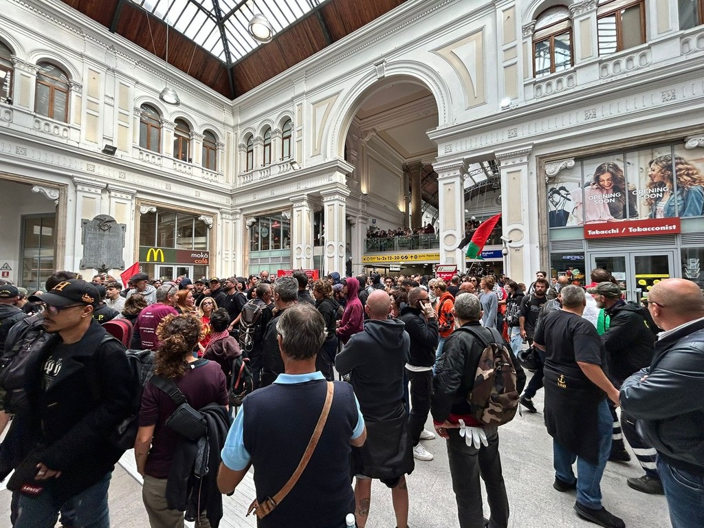 Poco dopo le 15, i manifestanti sono arrivati all'interno dell'atrio della stazione.