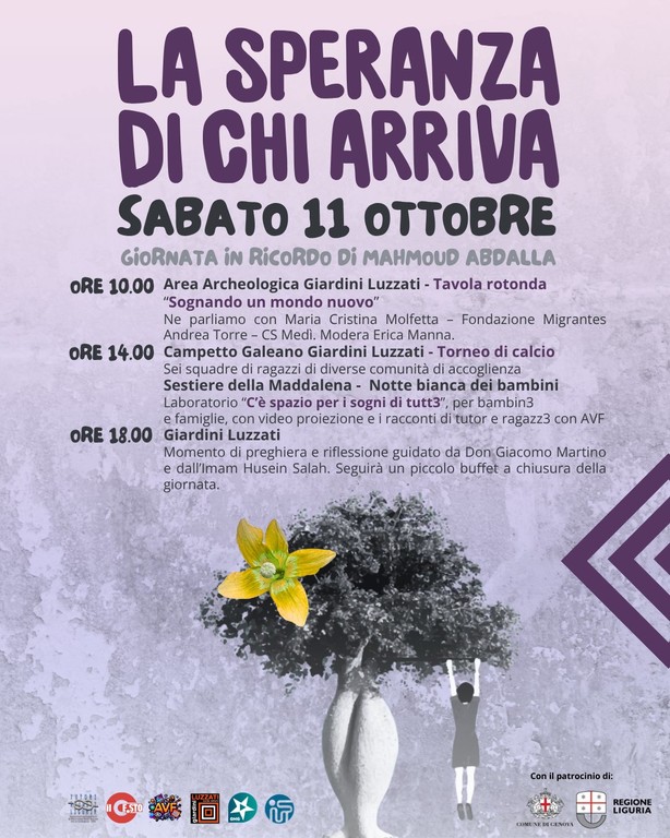 Anche quest’anno i Giardini Luzzati – Spazio Comune e il Centro Storico di Genova ospiteranno la Giornata in ricordo di Mahmoud Abdalla, il giovane egiziano vittima di un efferato omicidio nel 2023. Un appuntamento che, per il terzo anno consecutivo, invita la città a non dimenticare e a coltivare insieme il senso profondo della sua memoria: “la speranza di chi arriva”.