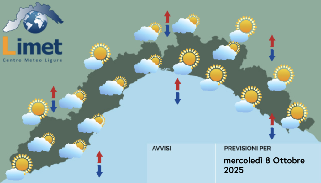 Ecco le previsioni per oggi, mercoledì 8 ottobre 2025, a cura di Limet.