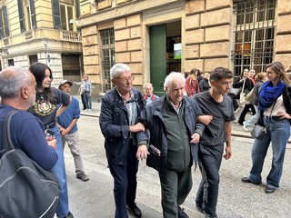 Un pomeriggio di memoria viva e di storia condivisa, oggi, nel rettorato dell’Università di Genova in via Balbi 5, occupato dal 23 settembre dagli studenti in solidarietà alla Palestina. Lì, dove da più di due settimane si svolgono assemblee e iniziative culturali, è arrivato Giordano Bruschi, detto “Giotto”, partigiano genovese e memoria centenaria della Resistenza.