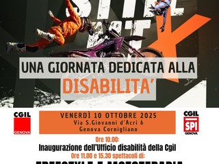 In occasione dell’inaugurazione dell’Ufficio disabilità in Camera del Lavoro in Via San Giovanni d’Acri 6 a Genova Cornigliano, previsto per le ore 10 di venerdì 10 ottobre 2025, la Cgil si apre al quartiere e alla città e ospita due spettacoli di freestyle su due ruote e moto terapia con il grande Vanni Oddera e i piloti del Team Daboot. La giornata è interamente dedicata alle disabilità e all’inclusione ed è organizzata dalla Camera del Lavoro di Genova, dallo Spi Cgil Genova e dal Patronato Inca.