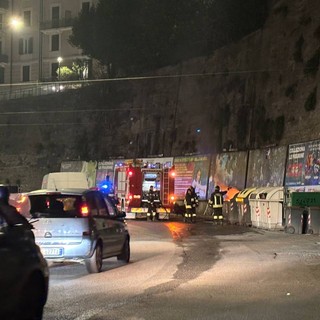Sampierdarena, cassonetto in fiamme in via Cantore: intervengono i vigili del fuoco con l'autobotte