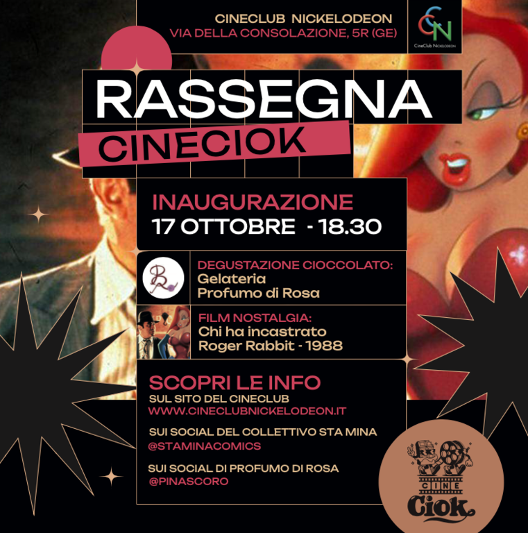 Così è nato Cineciok, la rassegna che unisce cinema e gusto e che debutta venerdì 17 ottobre al Cineclub Nickelodeon di Genova con Chi ha incastrato Roger Rabbit di Robert Zemeckis.