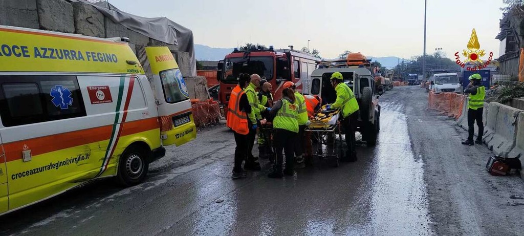 L'uomo ha riportato diverse lesioni a una gamba dopo il cedimento di una centina di sostegno nel cantiere. Soccorso congiunto di Vigili del Fuoco e 118