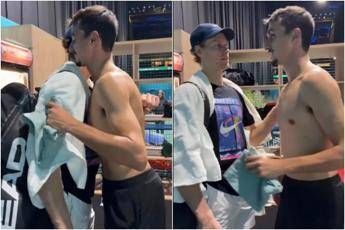 Jannik Sinner è arrivato a Parigi ed è subito siparietto con Lorenzo Sonego. Oggi, lunedì 27 ottobre, il tennista azzurro è sbarcato in Francia per allenarsi in vista dell'esordio al Masters 1000 francese, che avverrà al secondo turno contro il belga Zizou Bergs. Tra un campo e l'altro però, negli spogliatoi de La Defense, che ha sostituito l'impianto di Bercy, Sinner ha incontrato l'amico e compagno di doppio in Coppa Davis, reduce dalla sua partita al primo turno.