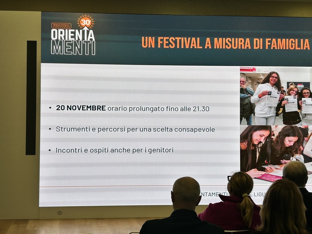 “Orientamenti è ormai un modello riconosciuto a livello nazionale - aggiunge l’assessora a Scuola, Università, Formazione e Orientamento al Lavoro Simona Ferro -. In trent’anni la Regione Liguria ha costruito un sistema integrato che accompagna i giovani durante tutto l’anno, sostenendoli nei momenti di scelta. Il festival sarà anche a misura di famiglia, con l’apertura serale del 20 novembre per consentire ai genitori lavoratori di partecipare”.