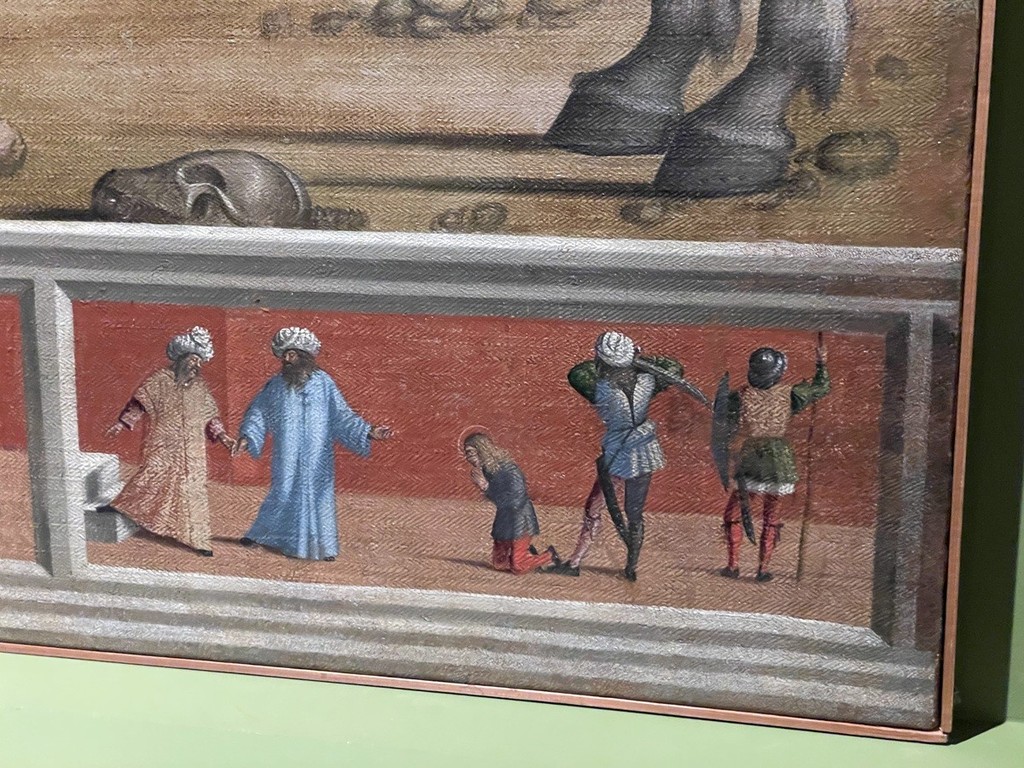 Accanto a Mantegna, due piccoli ma preziosi pannelli di scuola ferrarese, di Ercole de’ Roberti e Cosmè Tura: “Due opere diversissime ma unite dalla stessa tensione formale. La tavoletta di De’ Roberti proviene dal Polittico Griffoni, uno dei capolavori del Rinascimento, oggi smembrato tra i grandi musei europei. Quella di Tura, invece, era parte di un altarolo domestico: frammenti, certo, ma carichi di storia e di significato”.
