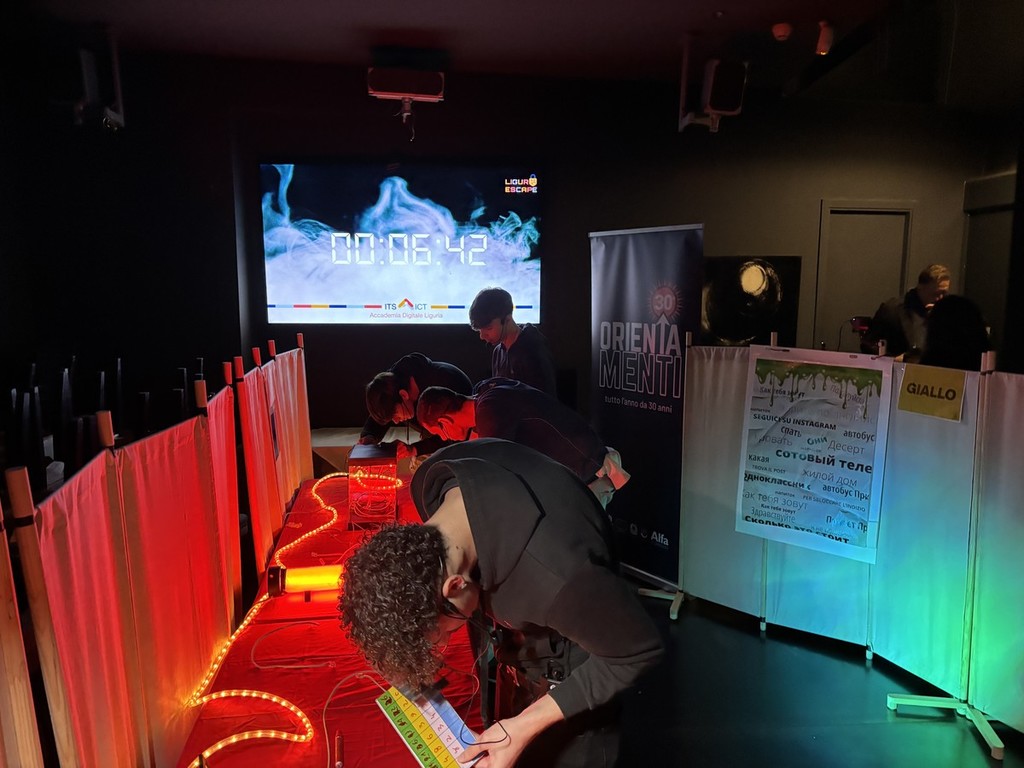 L’escape room è quindi strutturata come un vero e proprio percorso a tappe: ogni checkpoint rappresenta una delle aree di specializzazione offerte dall’ITS, trasformando l’apprendimento in un’esperienza dinamica e immersiva.