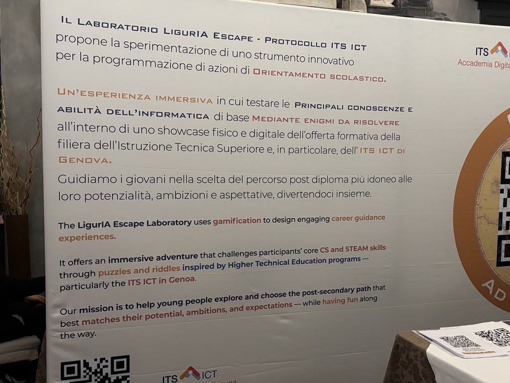 Cosa serve per decifrare il futuro e intraprendere una scelta formativa altamente professionalizzante? La risposta arriva da “LigurIA Escape”, un laboratorio innovativo che unisce gamification, tecnologia e orientamento per avvicinare i giovani alle professioni digitali. L’iniziativa, promossa al Festival della Scienza di Genova da Orientamenti e Progettiamoci il futuro in collaborazione con la Fondazione ITS ICT - Accademia Digitale Liguria, nasce e si sviluppa nel quadro del progetto MIM, ITS 4.0 edizione 2025 e offre un’esperienza ispirata alle escape room: un percorso di sfide e enigmi digitali che permettono di scoprire, giocando, le competenze chiave dell’informatica e le opportunità formative offerte dal sistema ITS.