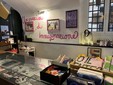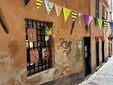 Il portone di vico Angeli 21r, tra via Garibaldi e via della Maddalena, che ospita la sede di Sc’art! si riconosce subito: ci sono bandiere colorate, scritte alle finestre, frammenti di quel che poi si potrà trovare all’interno del locale.