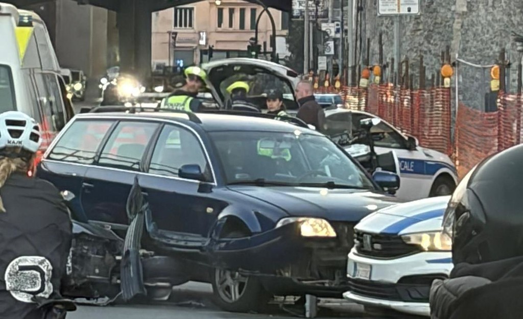 Corso Quadrio, scontro frontale tra auto e scooter: grave un uomo di cinquant'anni