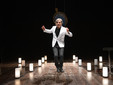 Il jukebox, la giacca bianca da cameriere, la vetrina piena di paste che da bambino sognava di poter mangiare: tutto questo rivive in scena, in un allestimento essenziale ma denso di simboli. Le luci, firmate da Dario De Luca, disegnano la strada, mentre lentamente si spengono, come a evocare la scomparsa di un mondo. “Quelle lucette richiamano via del Popolo, ma anche la sua trasformazione in una Spoon River di provincia: una collina di ricordi scivolata in pianura”.