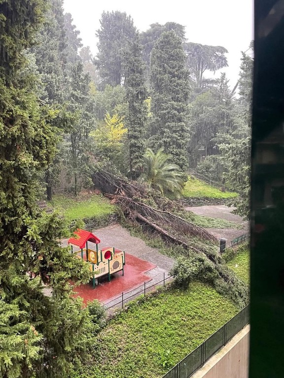A Sestri Ponente, in Villa Rossi Martini, un grosso albero si è abbattuto vicino ai giochi per bambini. Fortunatamente non ci sono state conseguenze, perché il parco oggi è chiuso per disposizione comunale.