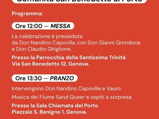 Ore 12.00 – Messa alla parrocchia della SS. Trinità, in via San Benedetto 12, celebrata da Don Nandino Capovilla insieme a Don Gianni Grondona e Don Claudio Ghiglione.