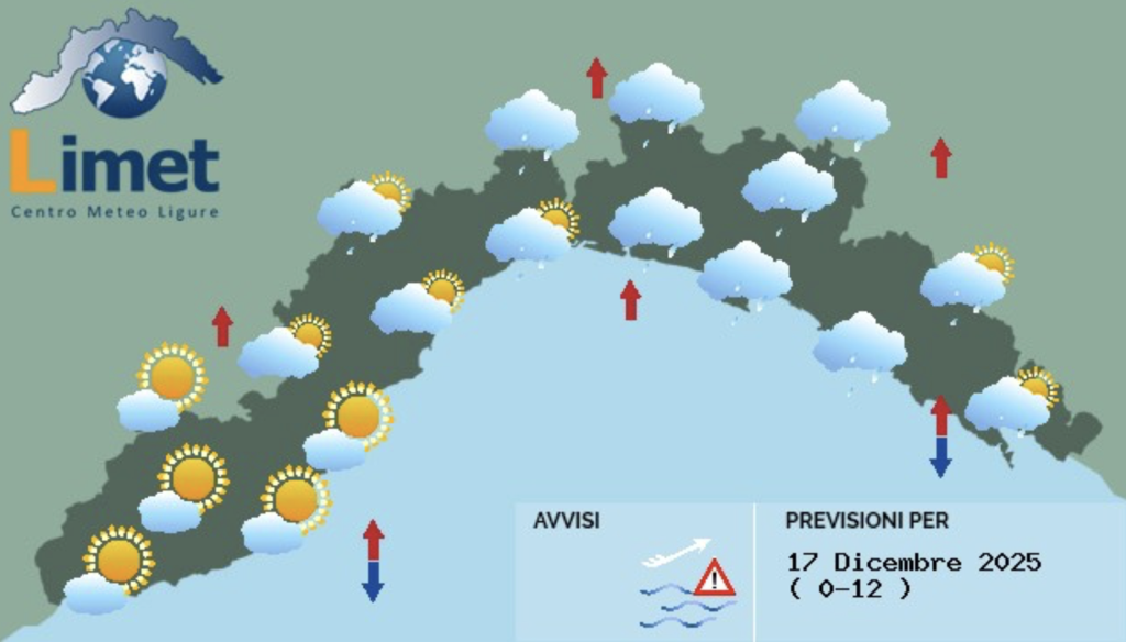 Ecco le previsioni meteo per oggi, mercoledì 17 dicembre, a cura di Limet.