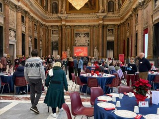 Mattinata di Natale all’insegna della solidarietà per la sindaca di Genova Silvia Salis, che oggi ha portato gli auguri di buon Natale della città agli ospiti e ai volontari dei tradizionali pranzi organizzati dalla Comunità di Sant’Egidio. Due le sedi coinvolte: il Salone del Maggior Consiglio di Palazzo Ducale e la Basilica della Santissima Annunziata del Vastato, dove era presente anche l’arcivescovo di Genova Marco Tasca.