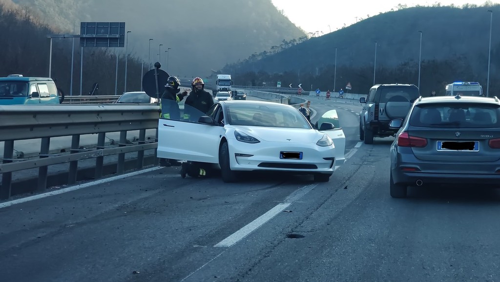 Qui, per cause ancora da accertare, una Tesla e una Porsche si sono scontrate all’altezza di Masone.