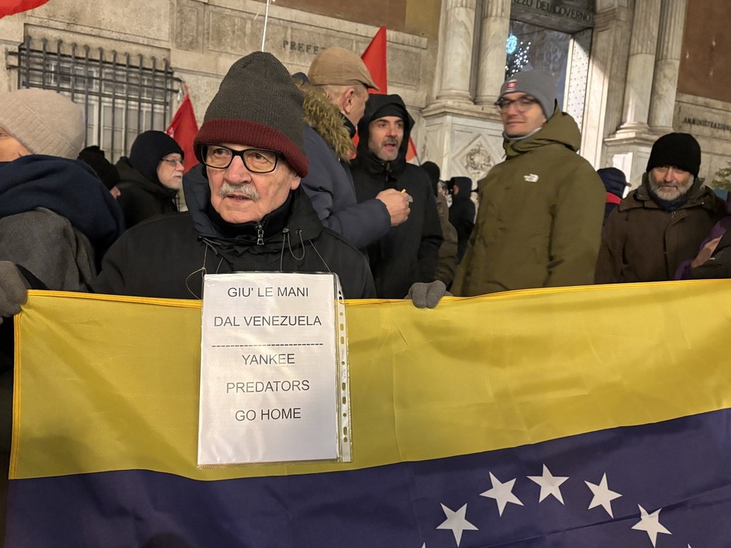 Sulla stessa linea l’intervento di Fabio Marante, segretario regionale della CGIL, che ha sottolineato come la presenza al presidio serva a “testimoniare la necessità del ripristino dello stato di diritto e del diritto internazionale”, condannando “l’aggressione militare statunitense nei confronti del Venezuela e del suo presidente Maduro” e ribadendo la richiesta di “pace tra i popoli”.
