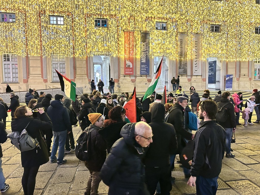 Accanto alla festa e all’entusiasmo, il passaggio della Fiamma Olimpica a Genova è stato accompagnato anche da un momento di contestazione. Nel pomeriggio, in piazza De Ferrari, alcune decine di persone si sono ritrovate con bandiere palestinesi, striscioni e slogan, dando seguito a un appello lanciato nei giorni precedenti sui social network.