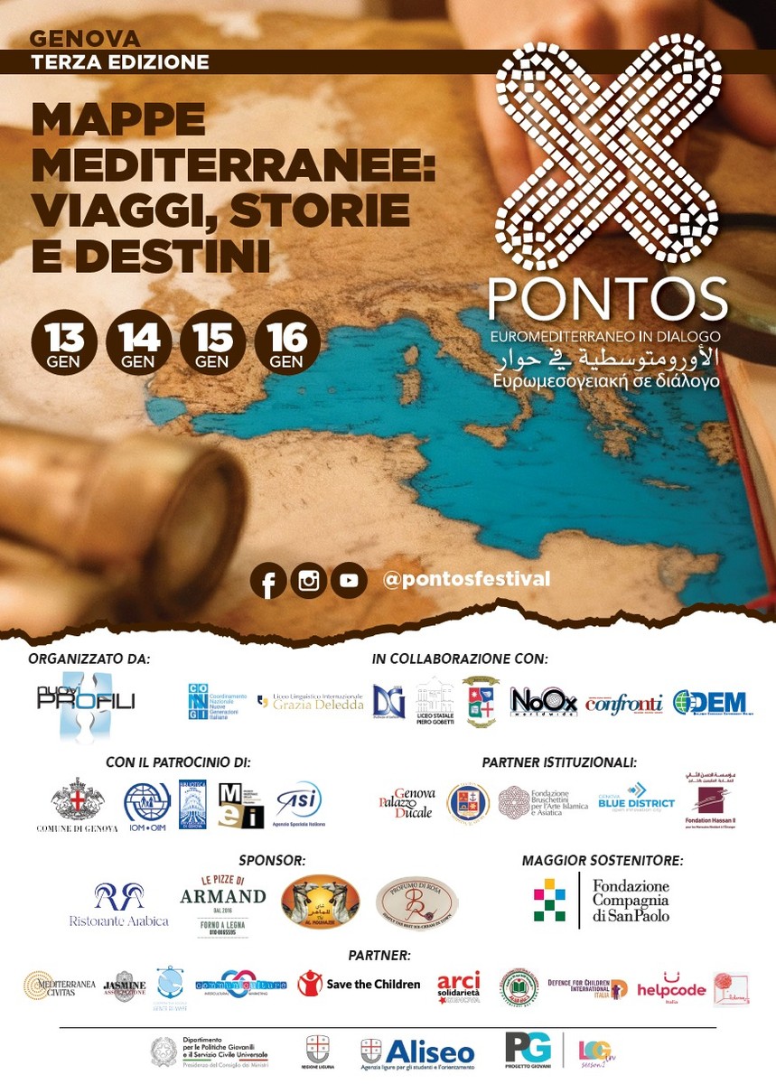 La terza edizione del festival “Pontos – Euromediterraneo in dialogo” aprirà i battenti il 13 gennaio e animerà vari luoghi della città come Palazzo Ducale, la Biblioteca Universitaria, il Blue District, il MEI, l’Acquario e il Teatro LaClaque fino al 16. Tema del 2026 “Mappe mediterranee: viaggi, storie e destini”, un tema che si propone di mettere al centro il viaggio e i viaggiatori come elementi fondanti della civiltà mediterranea. Rotte, attraversamenti, migrazioni, pellegrinaggi, esplorazioni e ritorni hanno da sempre modellato paesaggi, culture e identità: in un tempo segnato da frontiere chiuse e narrazioni securitarie, Pontos intende restituire al viaggio la sua potenza poetica, politica e sociale, rilanciando una visione del Mediterraneo come spazio di connessione, relazione e cura.
