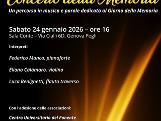 Ci sono momenti dell’anno in cui fermarsi diventa un gesto necessario. Quando la musica trova il silenzio giusto intorno a sé, può trasformare quel gesto in un incontro, un respiro, una memoria condivisa. È con questo spirito che, sabato 24 gennaio 2026 alle ore 16, la Sala Conte di via Cialli 6D a Pegli accoglierà il Concerto della Memoria proposto dalla Scuola Musicale Giuseppe Conte, con l’adesione delle associazioni Centro Universitario del Ponente, Donne a Ponente e Pegliflora.