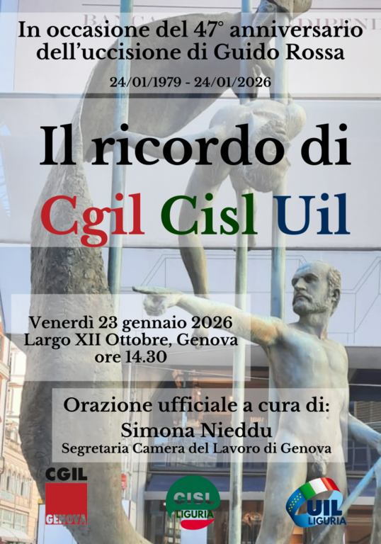 Alle ore 14.30, Cgil, Cisl e Uil terranno un’ulteriore commemorazione presso il monumento dedicato a Guido Rossa in Largo XII Ottobre, dove sarà deposta la tradizionale corona di alloro. L’orazione ufficiale, in forma unitaria, sarà pronunciata da Simona Nieddu, Segretaria della Camera del Lavoro di Genova. L’iniziativa sottolinea come il sacrificio di Rossa rimanga un esempio di coraggio, responsabilità e giustizia, valori che non perdono significato col passare del tempo.