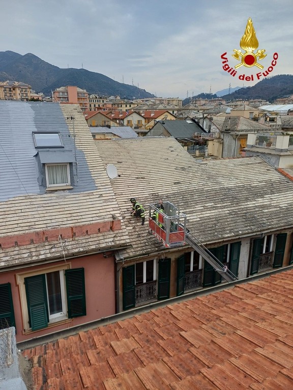 In via Sestri i pompieri sono intervenuti per alcune tegole e un’insegna pericolanti, situazione che ha reso necessaria la parziale chiusura della strada per consentire le operazioni in sicurezza. Altri interventi si sono registrati in via Chiaravagna e in via XX Settembre, dove uno striscione minacciava di staccarsi a causa del vento.