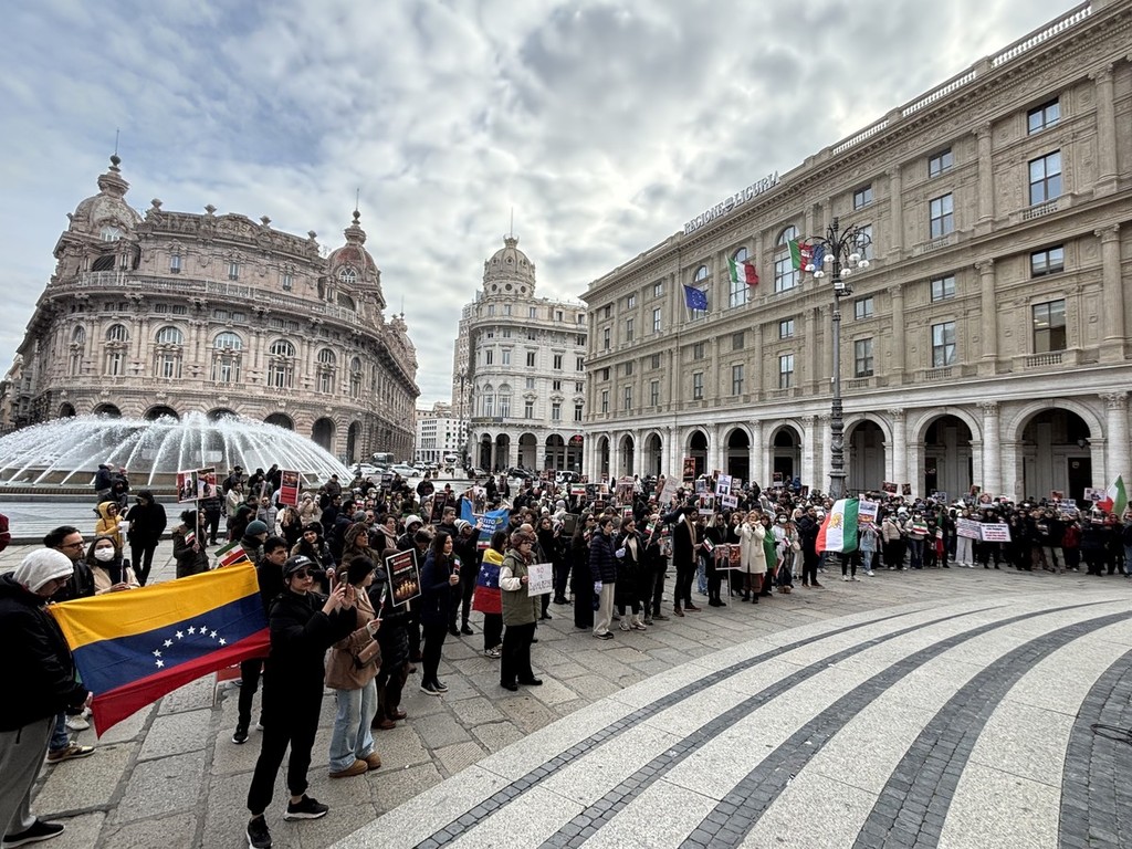 La protesta ha visto anche la partecipazione e la solidarietà della comunità venezuelana. Una portavoce ha sottolineato come la lotta contro regimi “violenti, crudeli e criminali” sia comune a entrambi i popoli. “Oggi condividiamo una stessa lotta: per la democrazia, per la libertà, ma soprattutto per i diritti umani. E voglio dirlo con forza: questa non è politica” spiega. “È importante ricordare che questa battaglia non è un gioco politico. Spesso tutto viene confuso e ridotto a ideologia, ma non è così. Questa è una lotta per i diritti umani. Non possiamo restare in silenzio solo perché magari non condividiamo la stessa ideologia politica o lo stesso modo di pensare. I diritti umani non hanno colore politico. Chiunque veda la violazione dei diritti umani in un Paese, chiunque veda cittadini che scendono in piazza per la libertà e vengono uccisi, arrestati, repressi, dovrebbe sentire il dovere di schierarsi. Ci sono famiglie che soffrono ogni giorno. Io lo vivo sulla mia pelle. Famiglie il cui unico sogno oggi è vedere il proprio popolo libero. E non dovremmo nemmeno dover spiegare perché siamo scesi in piazza: la situazione è evidente, è documentata, è sotto gli occhi di tutti. Gli omicidi, le uccisioni, le repressioni le vediamo ogni giorno in televisione, sui media, ovunque. È stato così in Venezuela ed è così oggi in Iran. Per questo chiediamo alla cittadinanza italiana, a tutti gli amanti della democrazia e della libertà, a tutti coloro che prendono un microfono e dicono di stare dalla parte dei diritti umani, di scendere in piazza con noi e di accompagnare questa lotta per i diritti umani e per la libertà dei nostri popoli”.