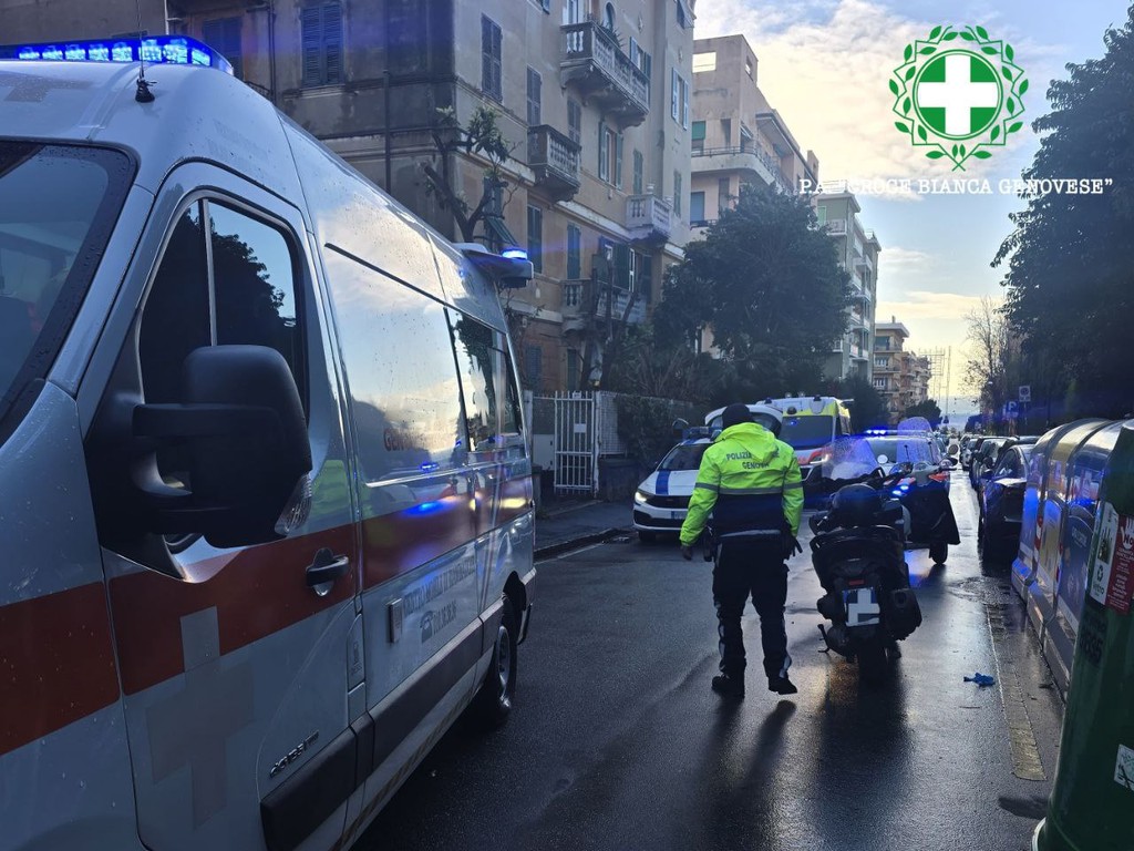 La vittima ha riportato un trauma cranico con emorragia e un sospetto trauma costale. Dopo essere stata spinalizzata, è stata trasportata in codice giallo al Pronto soccorso del Policlinico San Martino.