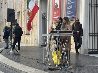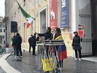 La protesta ha visto anche la partecipazione e la solidarietà della comunità venezuelana. Una portavoce ha sottolineato come la lotta contro regimi “violenti, crudeli e criminali” sia comune a entrambi i popoli. “Oggi condividiamo una stessa lotta: per la democrazia, per la libertà, ma soprattutto per i diritti umani. E voglio dirlo con forza: questa non è politica” spiega. “È importante ricordare che questa battaglia non è un gioco politico. Spesso tutto viene confuso e ridotto a ideologia, ma non è così. Questa è una lotta per i diritti umani. Non possiamo restare in silenzio solo perché magari non condividiamo la stessa ideologia politica o lo stesso modo di pensare. I diritti umani non hanno colore politico. Chiunque veda la violazione dei diritti umani in un Paese, chiunque veda cittadini che scendono in piazza per la libertà e vengono uccisi, arrestati, repressi, dovrebbe sentire il dovere di schierarsi. Ci sono famiglie che soffrono ogni giorno. Io lo vivo sulla mia pelle. Famiglie il cui unico sogno oggi è vedere il proprio popolo libero. E non dovremmo nemmeno dover spiegare perché siamo scesi in piazza: la situazione è evidente, è documentata, è sotto gli occhi di tutti. Gli omicidi, le uccisioni, le repressioni le vediamo ogni giorno in televisione, sui media, ovunque. È stato così in Venezuela ed è così oggi in Iran. Per questo chiediamo alla cittadinanza italiana, a tutti gli amanti della democrazia e della libertà, a tutti coloro che prendono un microfono e dicono di stare dalla parte dei diritti umani, di scendere in piazza con noi e di accompagnare questa lotta per i diritti umani e per la libertà dei nostri popoli”.
