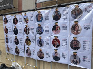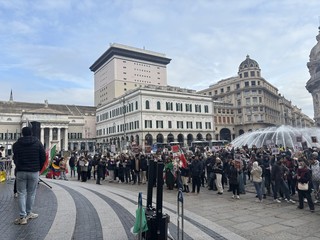 Quella in atto in Iran non viene definita dai manifestanti come semplice repressione, ma come un vero e proprio genocidio e un crimine contro l’umanità: “Ciò che oggi accade in Iran non è repressione. Il suo vero nome è crimine contro l’umanità e genocidio. Un regime che spara contro civili indifesi nelle strade, che uccide i feriti persino nei letti d’ospedale, che seppellisce i corpi in segreto, che arresta, fa sparire e tortura migliaia di persone, e che, oscurando internet, intimidendo i testimoni e nascondendo la verità, tenta di sottrarre i propri crimini allo sguardo del mondo, sta commettendo crimini contro l’umanità” spiega un’attivista dal palco allestito sui gradini di Palazzo Ducale. “Questa non è un’opinione politica: è una definizione chiara e precisa del diritto internazionale. Ma ciò che sta avvenendo in Iran va oltre il crimine contro l’umanità. Quando un governo, o meglio, un regime, considera il proprio popolo, colpevole solo di chiedere libertà e dignità umana, come un nemico esistenziale; quando lo disumanizza e crea sistematicamente le condizioni per la sua distruzione, allora ci troviamo di fronte a un genocidio. La giovane generazione iraniana è bersaglio dei proiettili. I bambini sono vittime di una violenza organizzata. Le famiglie vengono distrutte e la continuità di un’intera generazione è deliberatamente presa di mira. Da oltre 300 ore internet è interrotto in Iran. Il Paese è precipitato nel silenzio e nell’oscurità, e in questa oscurità il massacro continua. Interrompere le comunicazioni significa eliminare i testimoni, ed eliminare i testimoni significa facilitare il compimento del crimine”.