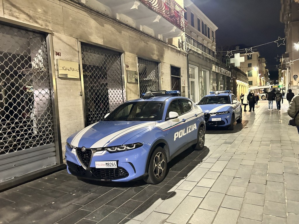 Poco dopo, nella stessa via, gli agenti dell’U.P.G.S.P. sono intervenuti per la segnalazione di merce rubata in un supermercato. Un dipendente ha indicato un uomo che aveva tentato di superare le casse senza pagare alcuni articoli. Fermato dagli agenti, il soggetto, nervoso e agitato, ha cercato di occultare la refurtiva e ha opposto resistenza al controllo. Durante il trasporto in Questura ha continuato a mantenere una condotta violenta, colpendo con testate il finestrino della volante, e una volta negli uffici si è rifiutato di fornire le proprie generalità.