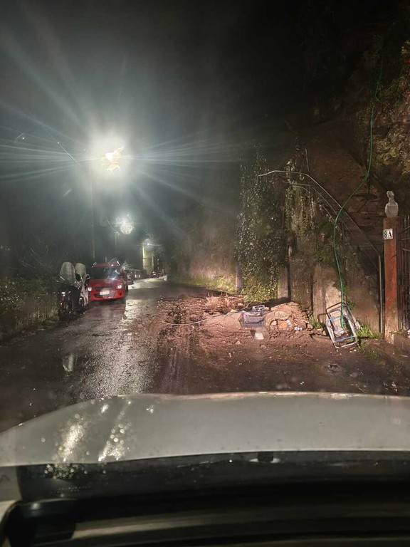 Secondo quanto finora riportato, il muro è finito sulla strada sottostante ingombrandone la carreggiata.