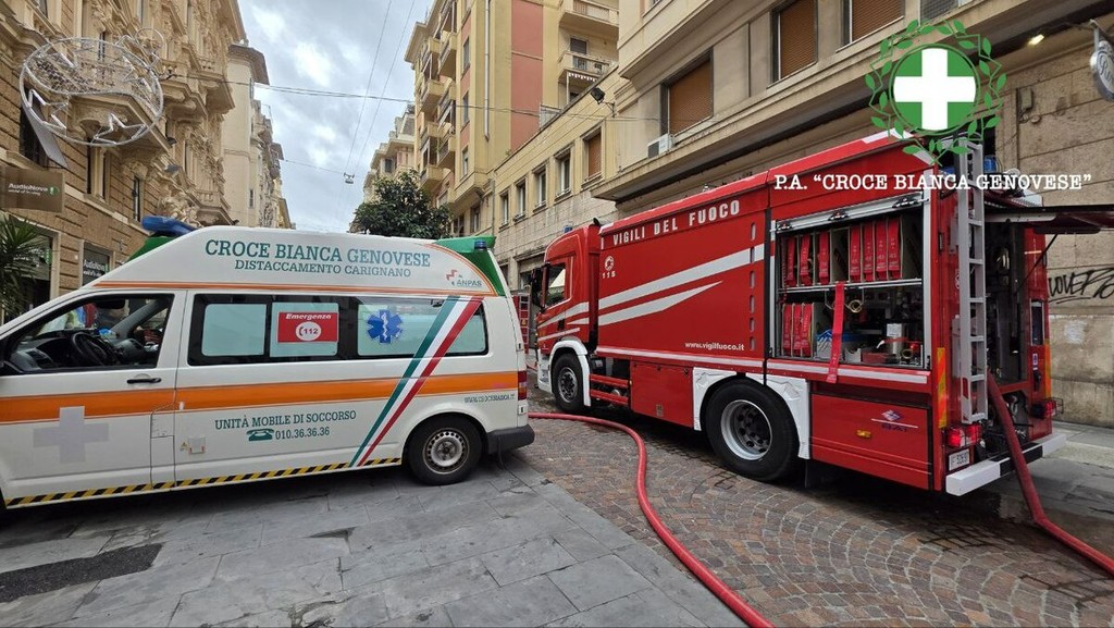 La donna è stata soccorsa e trasportata in codice giallo al pronto soccorso dell’ospedale San Martino per l’inalazione del fumo.