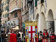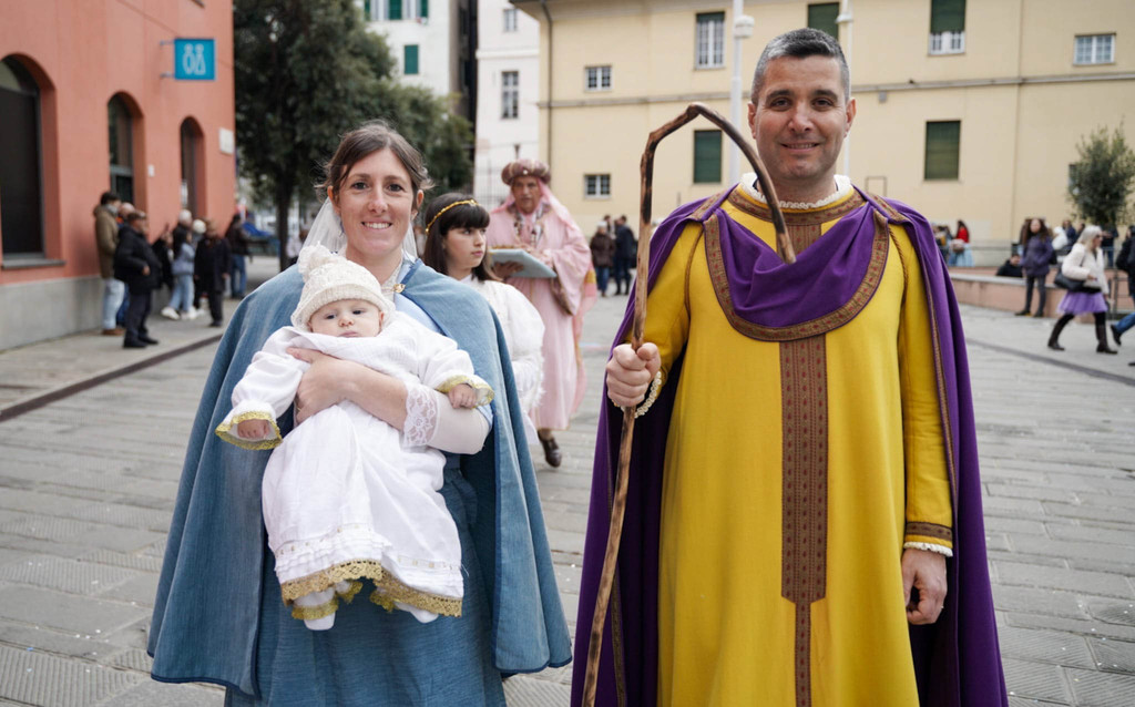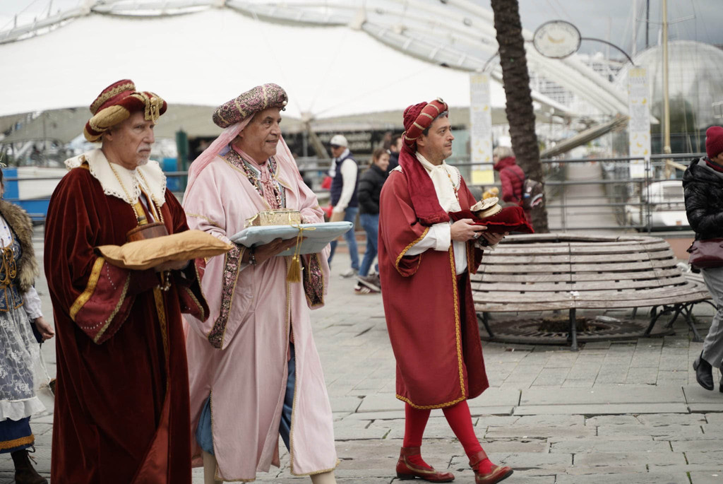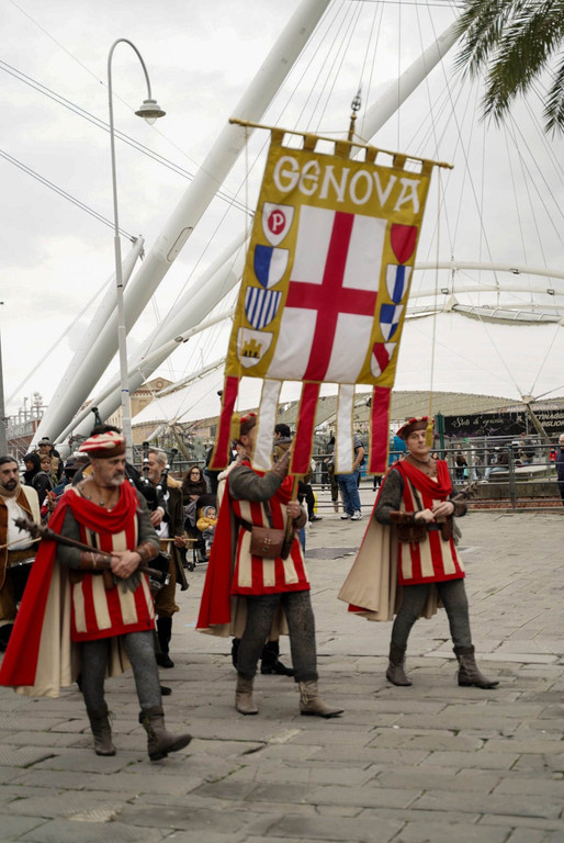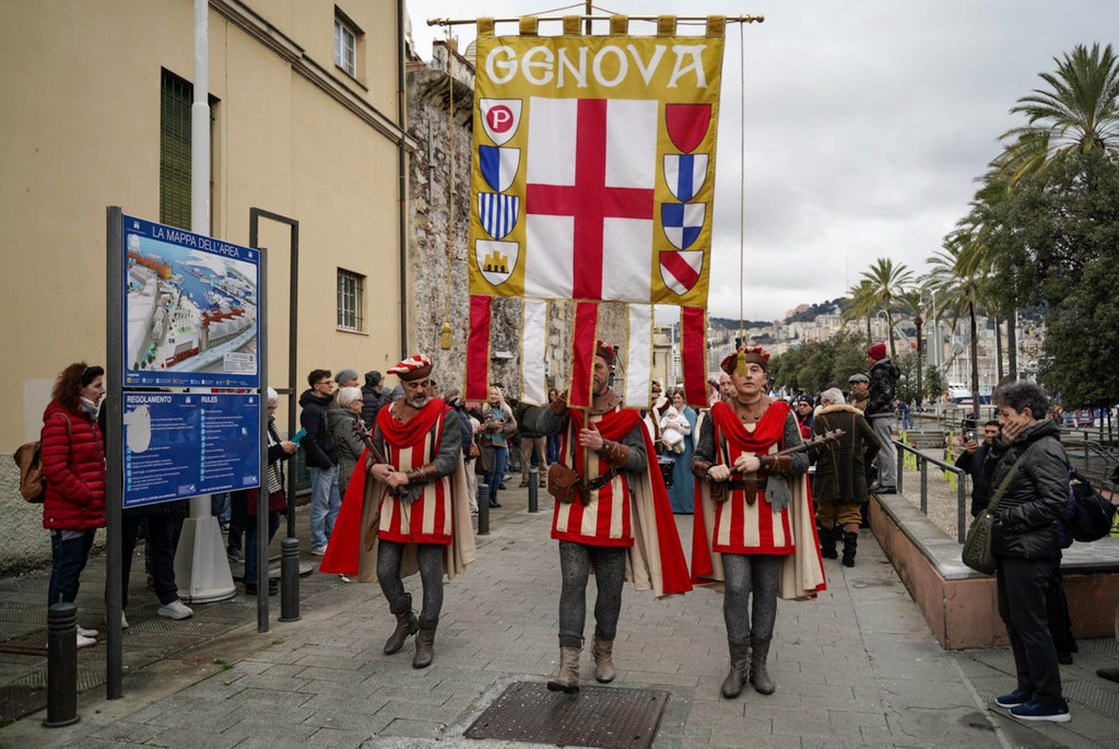 Il corteo, composto da oltre 60 figuranti in costume e accompagnato dai gruppi storici genovesi, ha attraversato il centro storico prima di raggiungere Palazzo Ducale, coinvolgendo cittadini e visitatori in un momento di forte partecipazione e grande impatto scenografico.