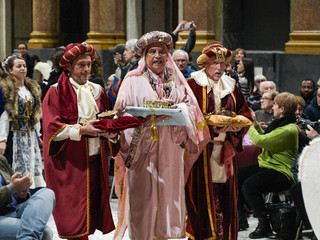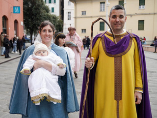 Il corteo, composto da oltre 60 figuranti in costume e accompagnato dai gruppi storici genovesi, ha attraversato il centro storico prima di raggiungere Palazzo Ducale, coinvolgendo cittadini e visitatori in un momento di forte partecipazione e grande impatto scenografico.