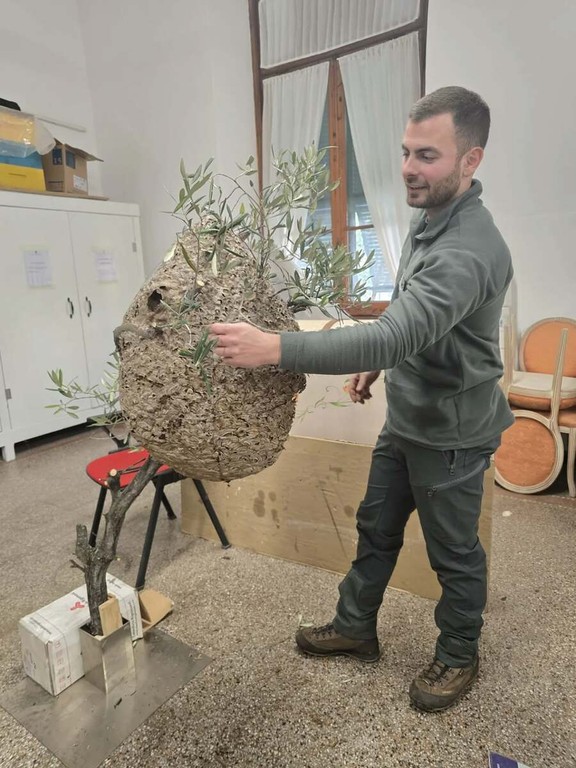 Per liberare l'ambiente e proteggere la vegetazione, i guardiaparco hanno dovuto compiere un'operazione delicata: hanno dissotterrato la piccola pianta di ulivo su cui era ancorato il nido e l'hanno trasportata nella sede dell'Ente, dove “verrà liberata dal grave peso e verrà curata per essere ripiantata”.