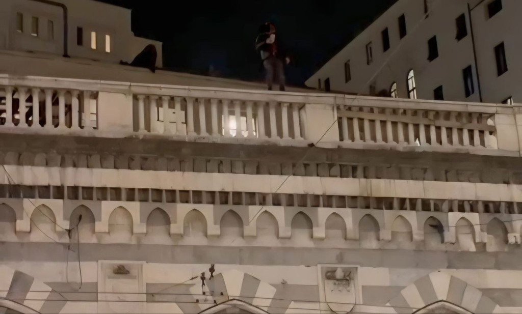 La scena, avvenuta nei pressi della Abbazia di Santo Stefano, ha attirato l’attenzione di numerosi passanti. Secondo quanto riferito, il giovane stava anche riprendendo la strada sottostante con il proprio smartphone, un comportamento che ha fatto temere potesse compiere un gesto estremo.
