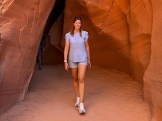 Arriviamo a Page, dove si trova Horseshoe Bend, l’ansa perfetta del fiume Colorado, una forma così regolare da sembrare disegnata. Poco distante c’è Lake Powell, un lago artificiale incastonato tra le rocce rosse. Poi Antelope Canyon. Dove abbiamo scelto Canyon X, meno affollato e più raccolto. Qui la luce entra lentamente, scivola sulle pareti e le scolpisce con le ombre. È il luogo che più di tutti mi è rimasto addosso. Il fatto che non lo attraversi soltanto: lo vivi. Si entra solo con guide navajo, che raccontano la storia del canyon e il suo significato profondo. Cammini dentro una scultura modellata dall’acqua e dal vento in migliaia di anni. A un certo punto, una guida inizia a suonare uno strumento tradizionale. Il suono rimbalza sulle pareti, amplificato dallo spazio. In quel momento capisci che non stai semplicemente osservando un luogo, ma partecipando a qualcosa di più grande.