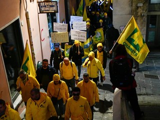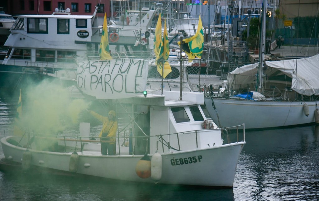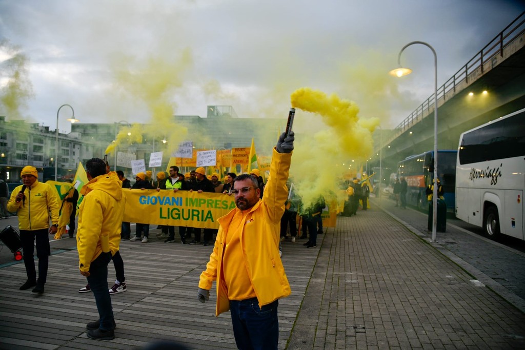 Barche dei pescatori, trattori simbolici e centinaia di cappellini gialli hanno colorato il centro di Genova. Circa 500 tra agricoltori, allevatori e operatori della pesca hanno sfilato in corteo dalla Darsena fino alla sede della Regione Liguria per chiedere il rispetto degli impegni presi e lo sblocco delle risorse già stanziate ma non ancora erogate.