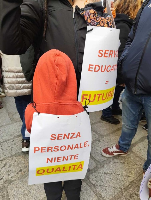Dal presidio è arrivata anche la richiesta alle parti politiche di farsi promotrici presso i parlamentari per superare il tetto di spesa del personale, consentendo ai Comuni – anche quelli virtuosi sul piano del bilancio – di procedere con nuove assunzioni e ridurre il ricorso alle esternalizzazioni. Le richieste avanzate sono precise: definizione di un piano dell’offerta formativa accompagnato da un piano strutturale di assunzioni, copertura stabile delle carenze di personale, rafforzamento delle figure pedagogiche e amministrative, tempi certi per la reinternalizzazione dei controlli sulle mense e investimenti adeguati su materiali e forniture.