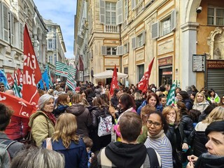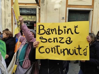 Un centinaio di educatori genovesi sono scesi in piazza questo pomeriggio davanti a Palazzo Tursi, sede del Comune di Genova, dove era in corso il consiglio comunale, per denunciare la situazione dei servizi educativi 0–6 di nidi e scuole dell’infanzia.