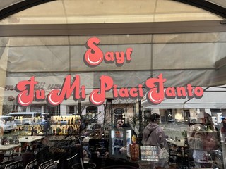 “Noi siamo tutti uguali, al bar e a lavorare” recita lo striscione appeso sul bancone del Bar Santissimo, il quartier generale di Sayf in piazza San Siro a Sanremo, prendendo parte del testo del brano in gara, ‘Mi piaci tanto’.