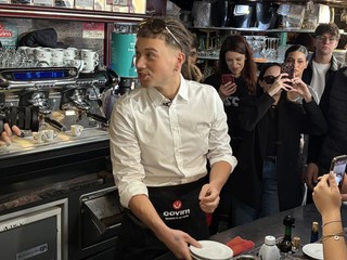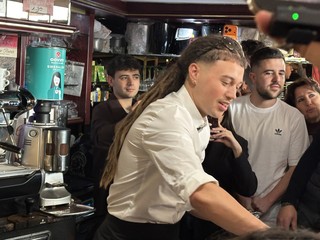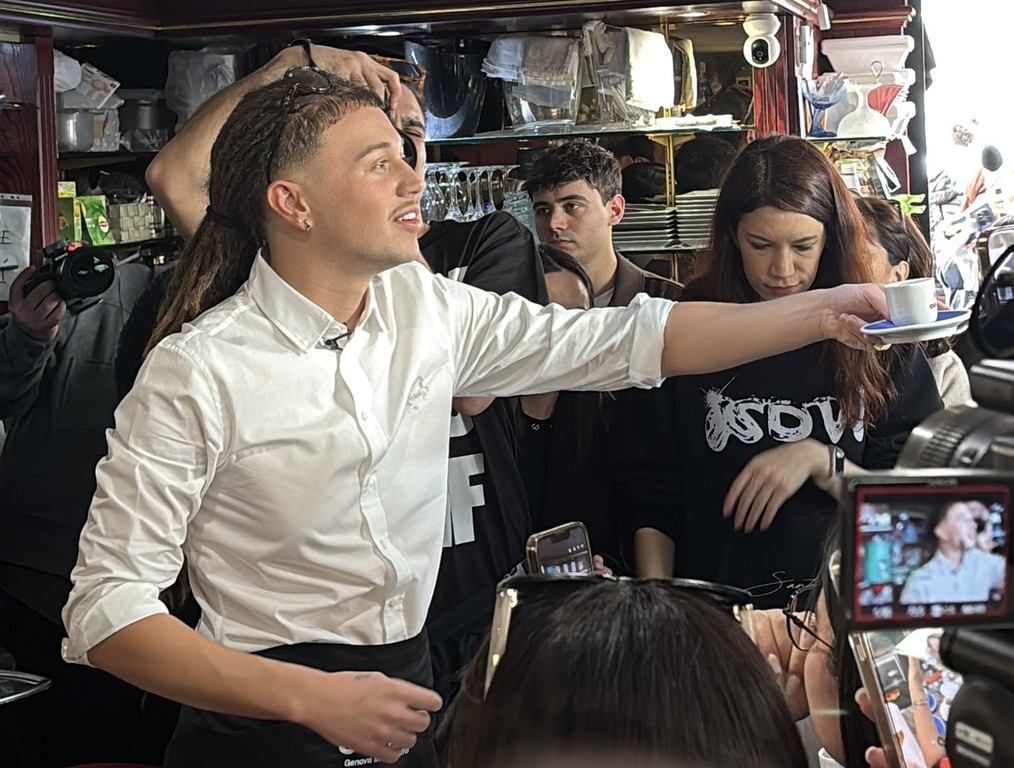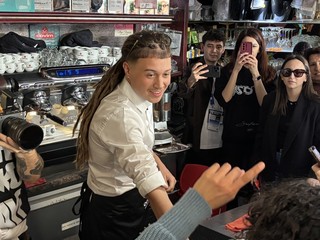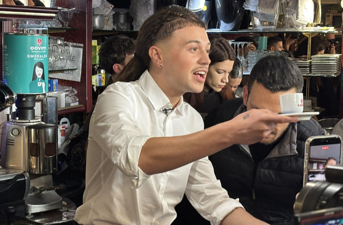 Caffè, chiacchiere e tanto affetto: Sayf, il giovane artista genovese in gara alla 76ª edizione del Festival di Sanremo con il brano “Tu mi piaci tanto”, ha deciso di dedicare parte della mattina di oggi, giovedì 26 febbraio, ai fan, scegliendo il Bar Santissimo di piazza San Siro come suo “quartier generale” nel centro della città ligure della musica.