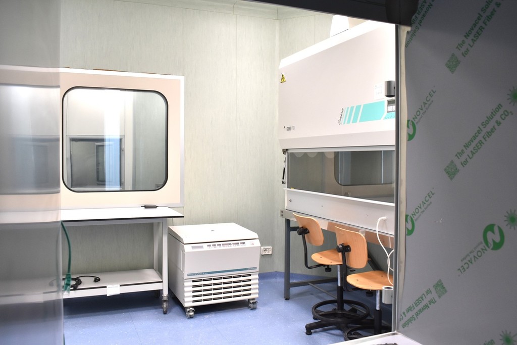 La ‘clean room’ o camera pulita è un ambiente controllato, caratterizzato da aria ad altissimo grado di purezza e da una concentrazione estremamente ridotta di micro-particelle di polvere in sospensione: caratteristiche indispensabili per la manipolazione di materiali biologici particolarmente sensibili. L’ammodernamento ha permesso di adeguare la stanza ai più stringenti requisiti normativi per poter eseguire manipolazioni estensive, ossia manipolazioni complesse che alterano le caratteristiche genetiche, fisiologiche o biologiche delle cellule.