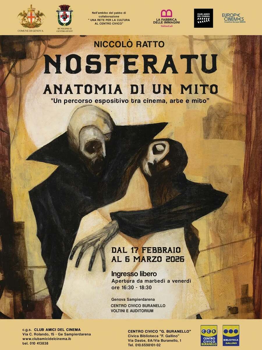 Martedì 17 gennaio 2026 alle ore 17, alla Fabbrica delle Immagini – Voltini Lab del Centro Civico Buranello (via Niccolò Daste 8) a Genova Sampierdarena, è stata inaugurata “Nosferatu – Anatomia di un mito”, percorso espositivo dedicato all’evoluzione della celebre figura vampirica tra cinema espressionista, arte e riletture contemporanee.