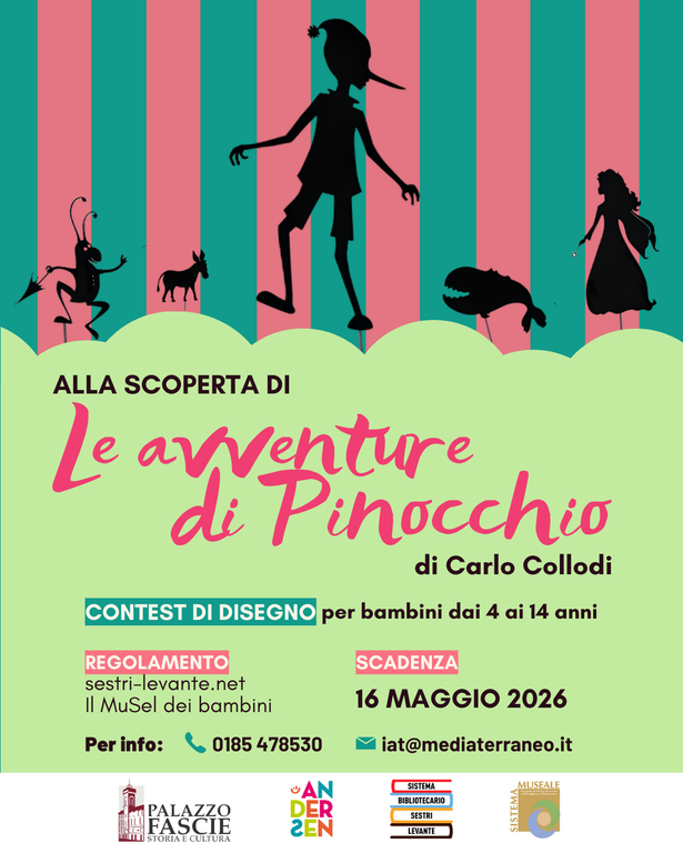 Il contest è dedicato a partecipanti con età compresa tra i 4 e i 14 anni (divisi in tre categorie). Il regolamento completo è disponibile sul sito del Premio & Festival Andersen www.andersensestri.it e sul portale turistico del Comune di Sestri Levante, www.sestri-levante.net, nella sezione dedicata a Palazzo Fascie (il MuSel dei bambini). La partecipazione è gratuita, la scadenza per la presentazione degli elaborati è il 16 maggio 2026.
