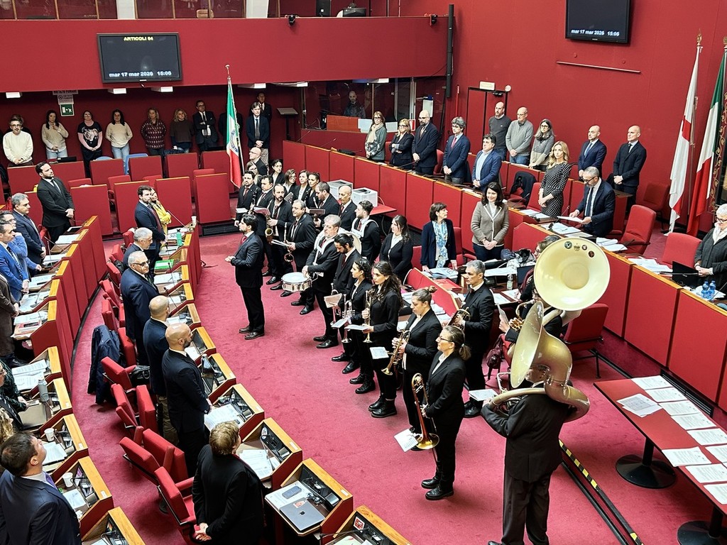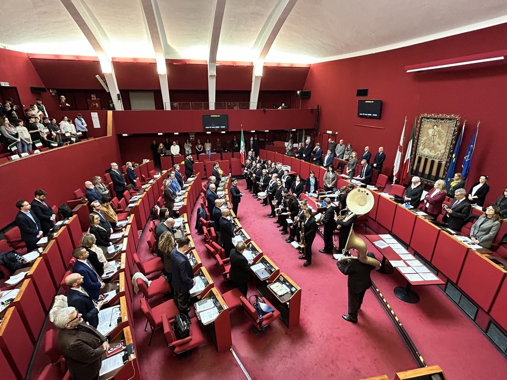 Le note dell'Inno di Mameli hanno risuonato nell'aula del Consiglio Comunale per celebrare il 165° anniversario dell'Unità d'Italia. Ad eseguire il "Canto degli Italiani" è stata la Filarmonica Sestrese, la cui presenza ha sottolineato il legame profondo tra la città di Genova e la storia risorgimentale.