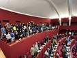 Presenti in aula anche studenti e studentesse genovesi, che hanno sventolato piccole bandiere tricolori.
