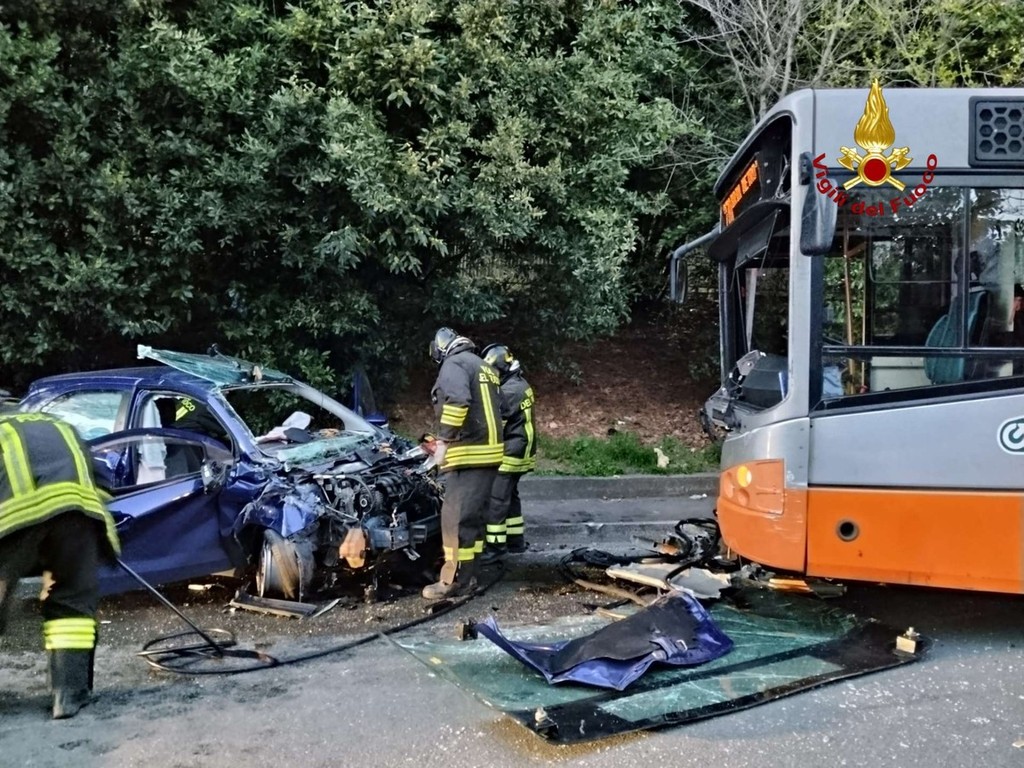 Ad avere la peggio è stata la conducente dell’auto, rimasta incastrata all’interno dell’abitacolo e liberata dai vigili del fuoco al termine di un intervento complesso. La donna ha riportato un politrauma ed è stata trasportata in codice rosso al pronto soccorso dell’ospedale San Martino. Ferito anche l’autista del bus, soccorso e accompagnato in codice giallo all’ospedale Galliera.